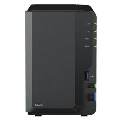 NAS SYNOLOGY DS223 X 2HD 3.5″/2.5″ SATA2/3-NO HD-CPU REALTEK RTD1619B -2GB DDR4-1P GIGA-3P USB-1P RJ45