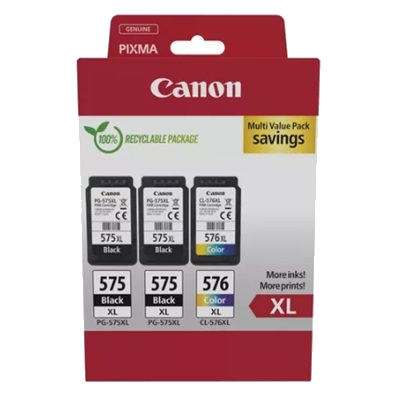Confezione multipla di cartucce d’inchiostro Canon PG-575XL x2/CL-576XL a resa elevata. Questa confezione multipla a resa elevata la soluzione ideale per una stampa conveniente. Include una cartuccia d’inchiostro a colori CL-576XL da 12,6 ml per stampare fino a 300 pagine di colori brillanti in fo