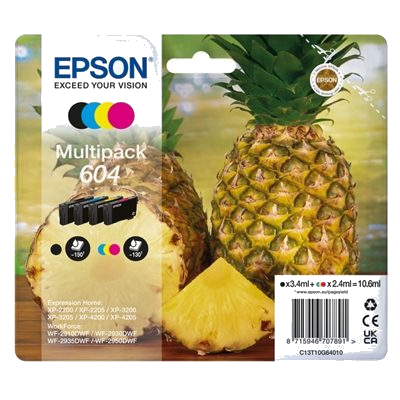 Il Multipack Epson 604 Ananas è la soluzione ideale per chi cerca un’alternativa economica e affidabile per la propria stampante Epson XP-2200, XP-3200, XP-4200, WF-2910DWF, WF-2930DWF o WF-2950DWF. Questo set di cartucce originali Epson offre stampe di alta qualità, con testi nitidi e colori brillanti, perfette sia per documenti di lavoro che per foto ricordo da condividere con la famiglia.