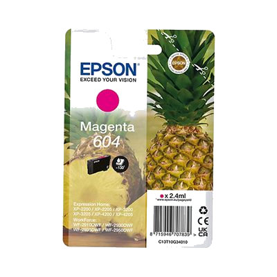 Grazie all’inchiostro di alta qualità Epson, otterrai colori brillanti e testi nitidi, perfetti per ogni esigenza di stampa. La cartuccia Epson 604 Ananas è facile da installare e offre un’ottima resa, permettendoti di stampare fino a 130 pagine. Ideale per un uso quotidiano, ti assicura stampe affidabili e durature, senza compromessi sulla qualità. Scegli la cartuccia magenta Epson 604 Ananas per dare vita ai tuoi progetti e documenti con colori intensi e professionali.